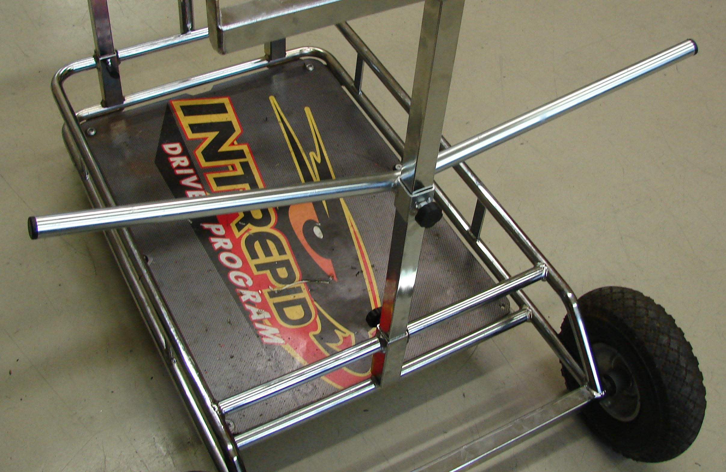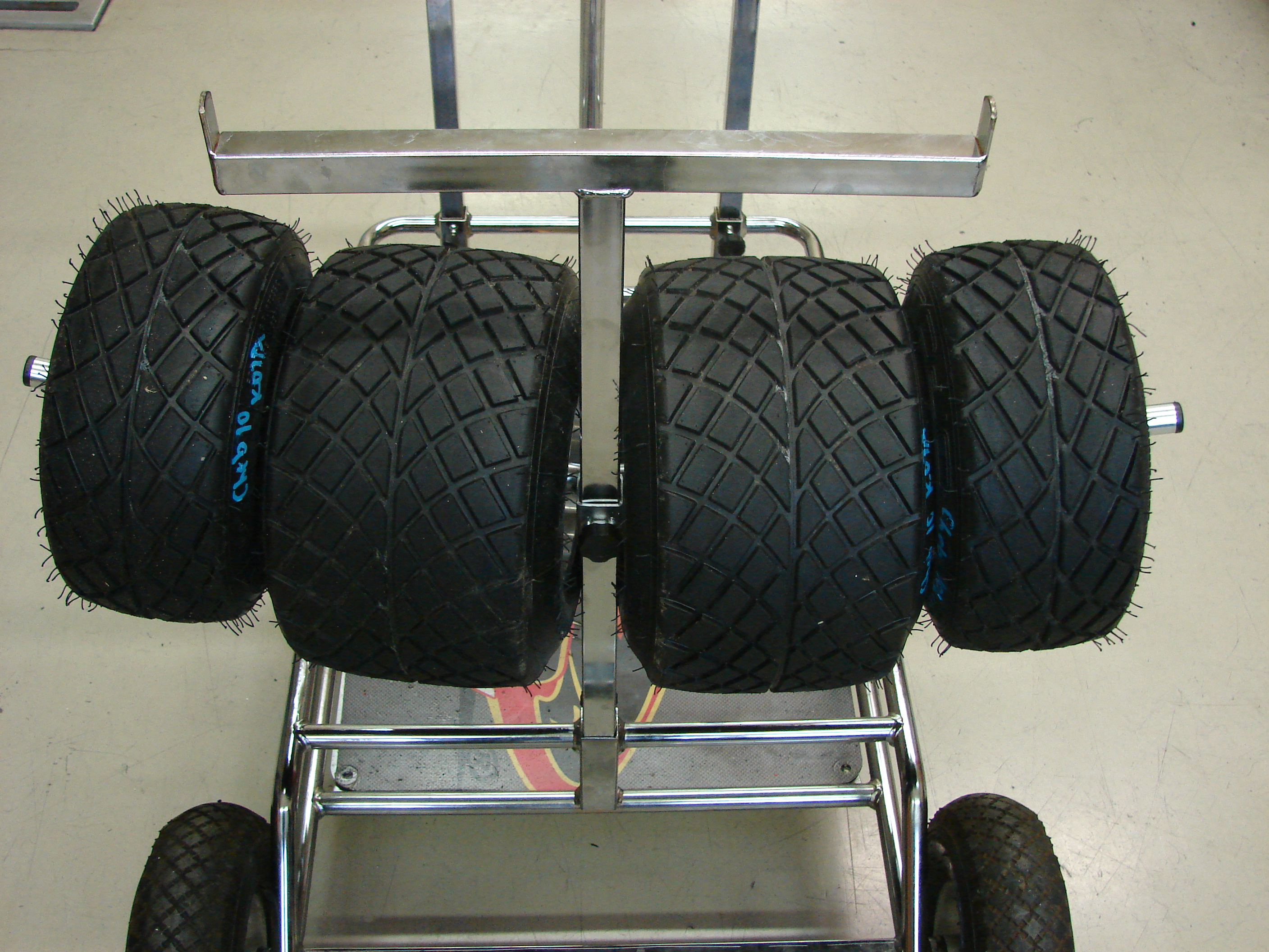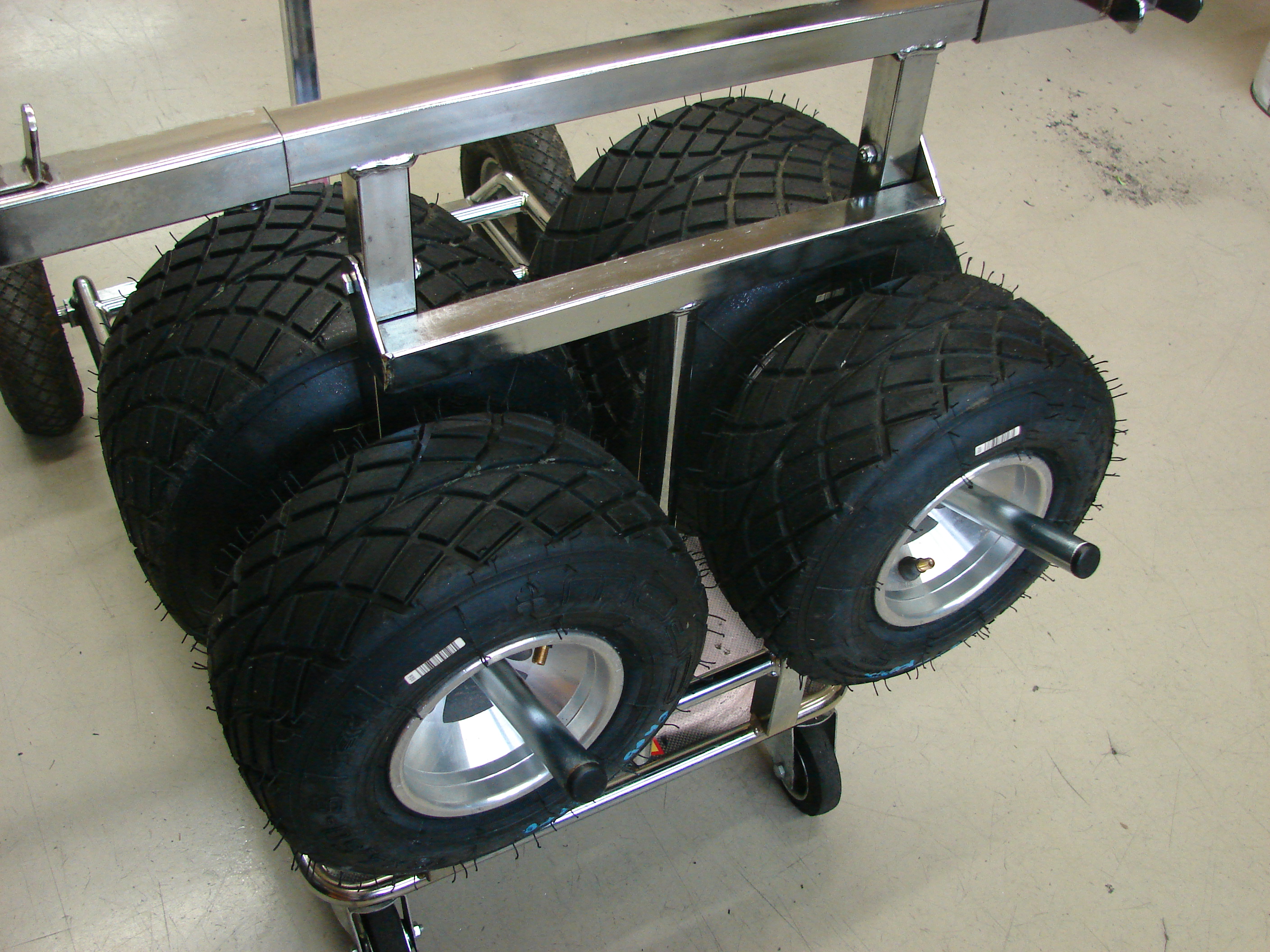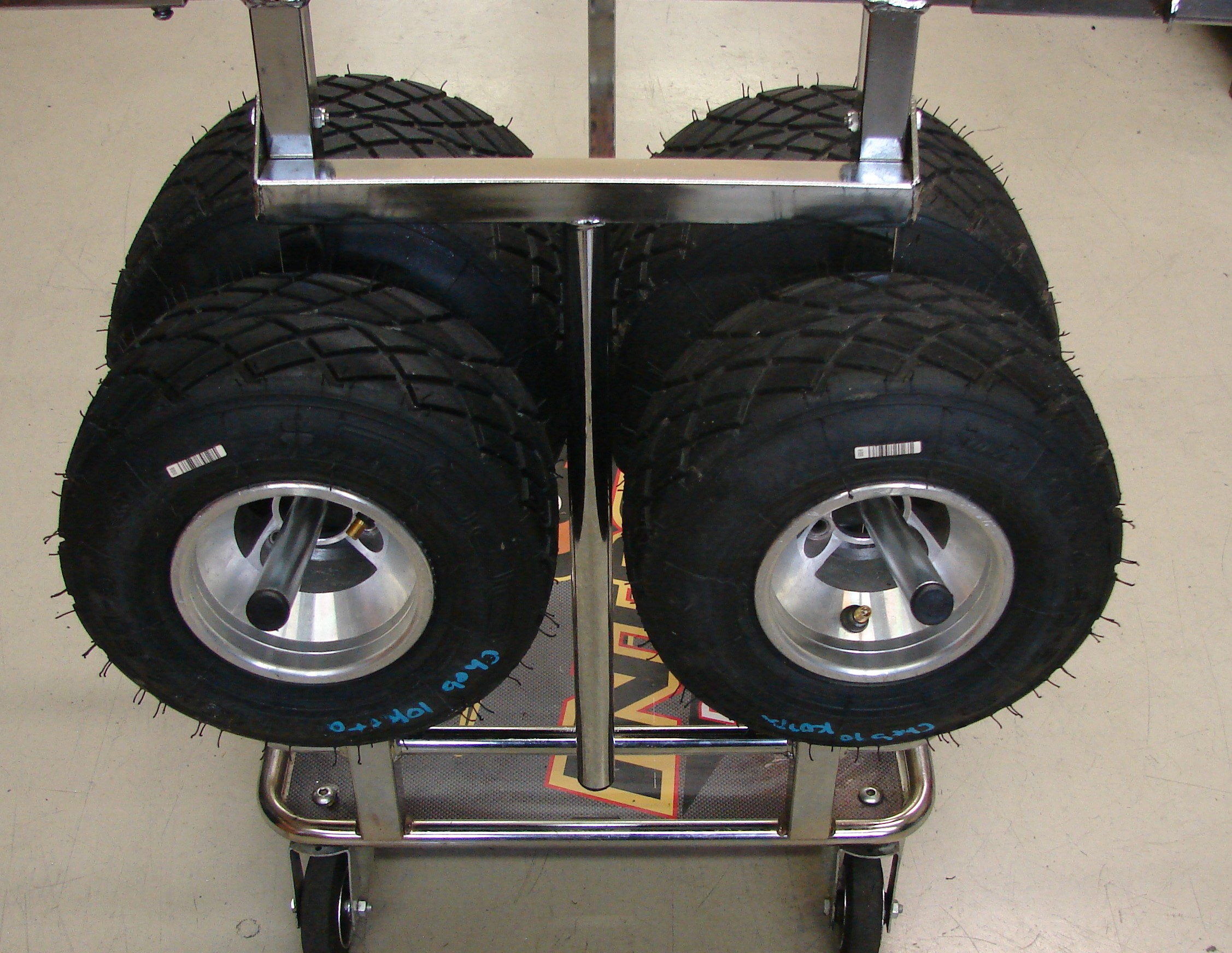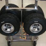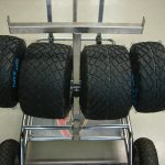 • Solves the problem of storage and transportation of wheels and tires on the kart trolley.